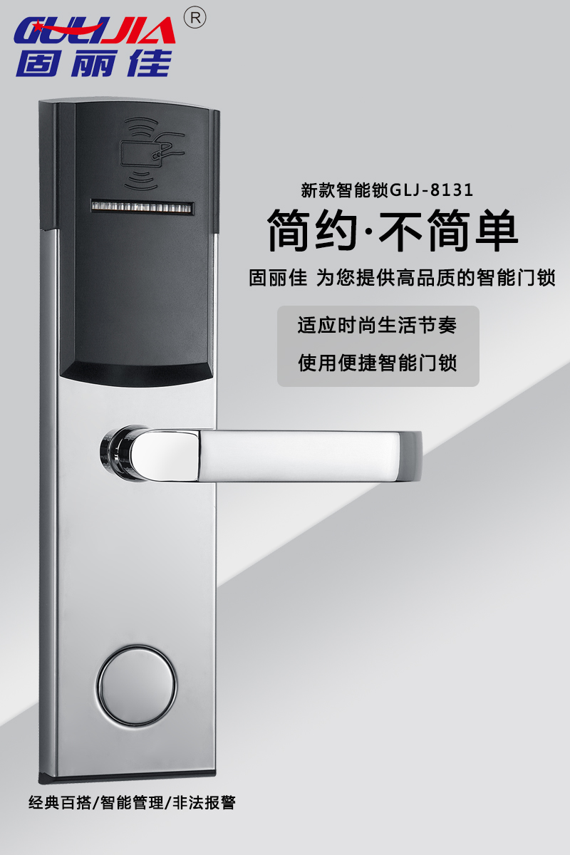 該款GLJ-8131不銹鋼酒店鎖,表面亮鉻處理,美觀耐用,永不褪色!有著經(jīng)典百搭、智能管理、智能防盜等多種特點(diǎn)。美麗的外觀及精美的設(shè)計(jì)讓您的酒店更加高大上,給客戶留下深刻印象。固麗佳酒店鎖防盜功能升級,安全,高檔,豪華,為您提供高品質(zhì)的智能門鎖!