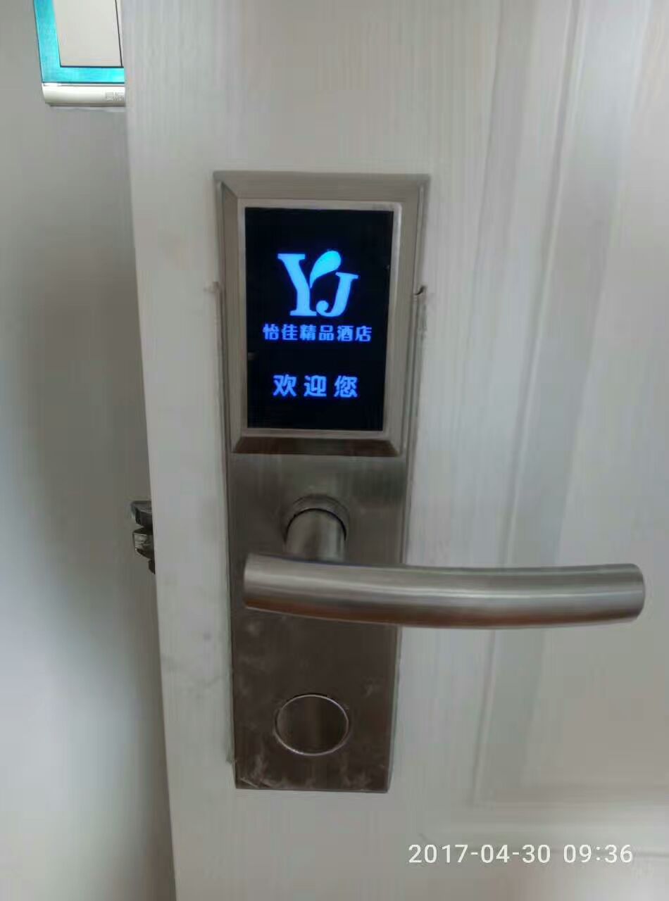 連州市怡佳精品酒店。采用固麗佳815FS精品酒店鎖,這款酒店鎖感應(yīng)區(qū)顯示面板可以個性化定制設(shè)計酒店名稱,房號,酒店品牌形象LOGO,彰顯酒店特色!