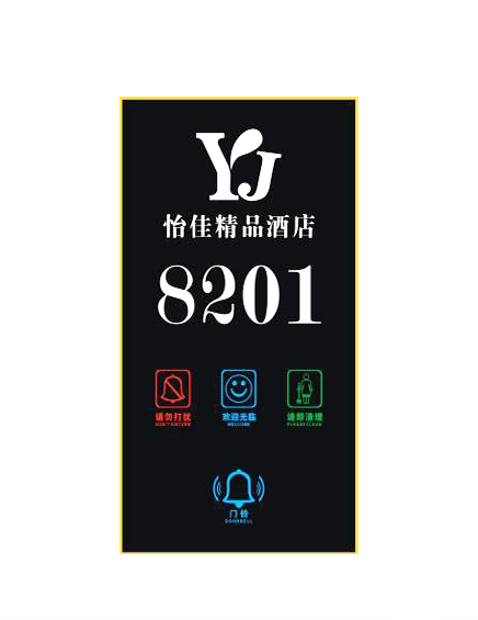 圖為怡佳精品酒店門鎖使用的固麗佳可定制鋼化玻璃門牌