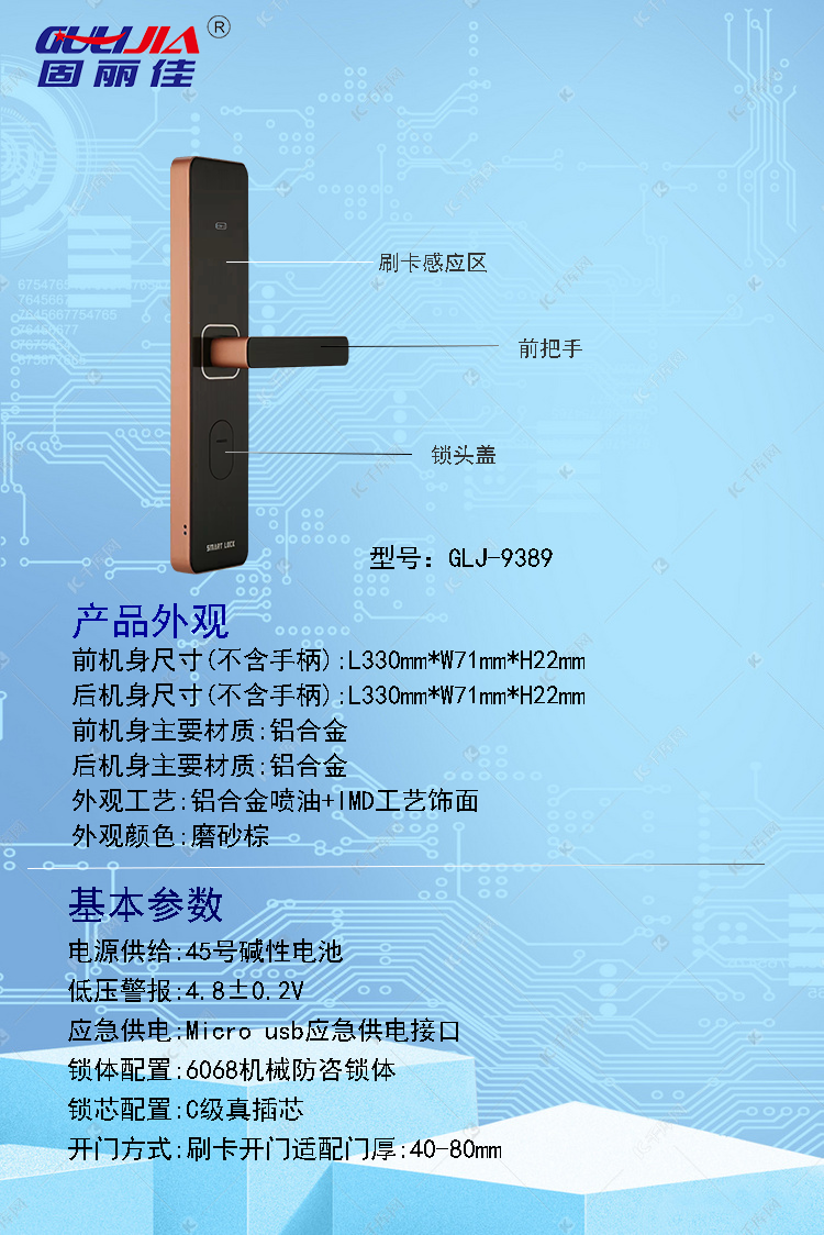 禧之萊酒店安裝了固麗佳GLJ-9389紅古藍(lán)牙密碼公寓鎖,廣州固麗電子科技藍(lán)牙公寓密碼鎖采用無(wú)線通訊技術(shù)不需布線可實(shí)現(xiàn)近距離藍(lán)牙開(kāi)鎖,遠(yuǎn)程發(fā)送密碼,NFC手機(jī)端藍(lán)牙發(fā)卡開(kāi)門(mén)和近距離藍(lán)牙發(fā)卡,可電腦端手機(jī)端同步在線,功能強(qiáng)大。