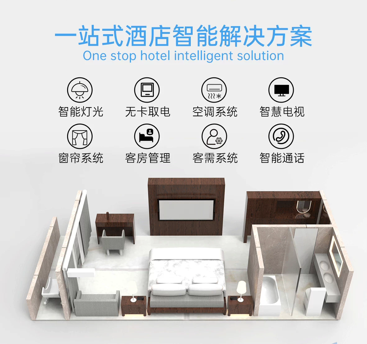 本次逸米酒店體育西路店采用我們固麗佳小度語音智慧酒店系統(tǒng),智慧酒店是將現(xiàn)代互聯(lián)網(wǎng)、物聯(lián)網(wǎng)、大數(shù)據(jù)、云計算、人工智能等高新技術(shù)運用于酒店的“食住行游購娛”等方面,實現(xiàn)酒店管理及服務(wù)信息化、網(wǎng)絡(luò)化及智能化的高效整合和優(yōu)化,為顧客提供舒適便捷的體驗和服務(wù)。智慧酒店的核心包括智能化設(shè)施、智能化管理和智慧化服務(wù)。