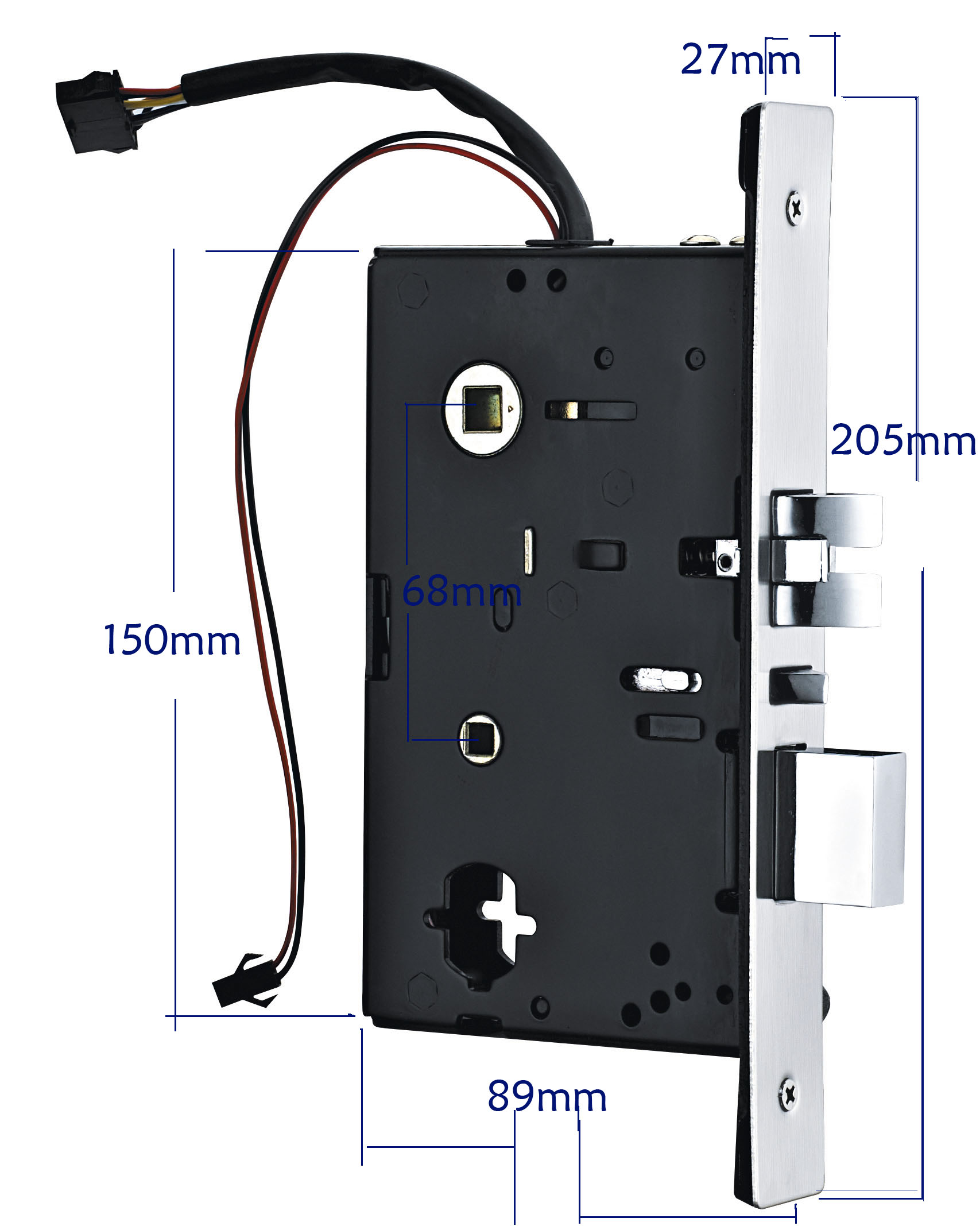 該款酒店鎖配置的鎖芯,采用的是國(guó)際標(biāo)準(zhǔn)的5舌鎖芯。有防撬保險(xiǎn)舌和室內(nèi)反鎖大方舌,具有機(jī)械鑰匙應(yīng)急開(kāi)門(mén)。