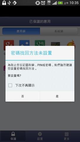 人總有健忘的時候,如果真的忘記密碼了,也可以在設(shè)定完圖形后,再設(shè)定遺忘密碼時找回密碼的方式。