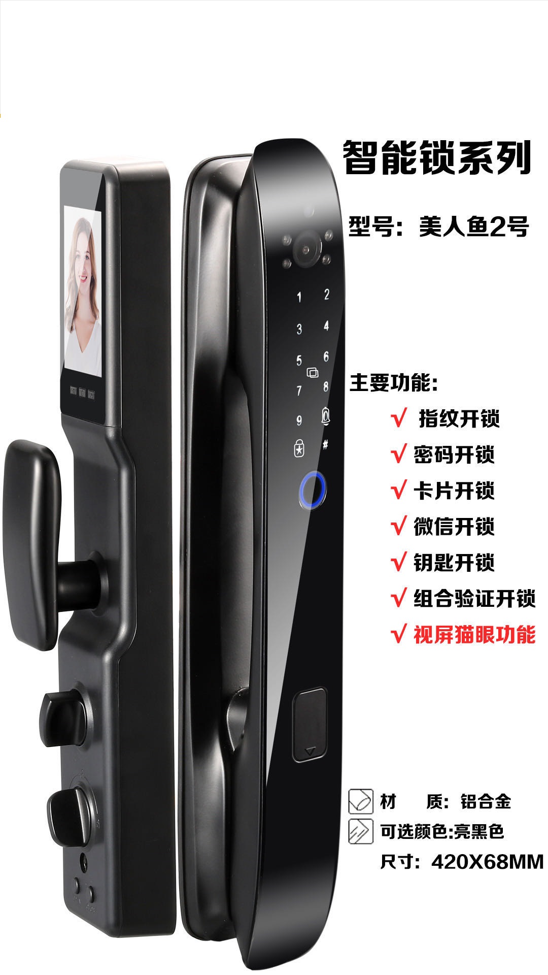 6. 美人魚2號指紋密碼鎖,另附動感門鈴,省力更省心?。。?/span>