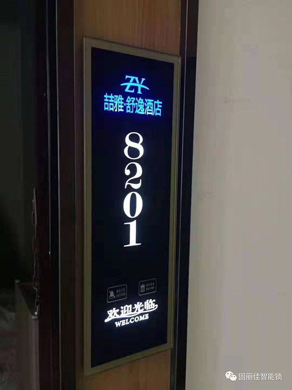 廣州喆雅.舒逸酒店此次與我們固麗科技合作選擇安裝了固麗佳GLJ-9899FH的新款智能酒店門鎖以及配套的電子門顯。此款酒店鎖是固麗佳專利產品,外觀設計新穎,采用堅實防暴的鋅合金材質,同時刷卡感應區(qū)顯示面板可以個性化定制LED顯示酒店名稱和品牌LOGO,彰顯了酒店特色!其豪華的氣質更是奢華與尊貴的象征,是各大星級酒店賓館首選,固麗佳智能酒店鎖卓越的質量品質與完善的售后服務更是受到各大酒店青睞的原因之一!