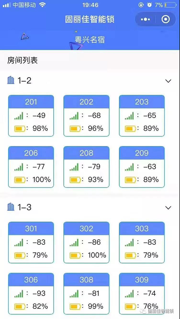 廣州上下九十八甫路粵心民宿精品酒店公寓此次選擇安裝了固麗佳GLJ-9899LoRa無線聯(lián)網(wǎng)密碼鎖。此款智能鎖外觀高端大氣,是固麗佳研發(fā)生產(chǎn)的專利產(chǎn)品。固麗佳LORA無線聯(lián)網(wǎng)鎖可實現(xiàn)密碼開鎖信息實時聯(lián)網(wǎng)監(jiān)控、手機開鎖,密碼開鎖,二維碼開鎖,不需布線就可以實現(xiàn)遠(yuǎn)程開鎖、遠(yuǎn)程鎖定鎖、遠(yuǎn)程送電斷電,防飛房,防欠租,還可電腦端手機端同步在線!功能強大,是精品特色酒店,高端公寓首選之良器!